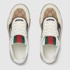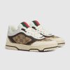 The Re-Web sees Gucci’s heritage stripes as a bold statement detail on a contemporary silhouette. Defined by iconic details, this pair of sneakers is crafted Original GG canvas and completed with green and red Web tongue.
