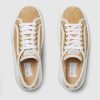 The iconic GG suede define this platform sneaker, highlighting one of the House’s most defining codes. The chunky silhouette is further elevated with a white canvas trim and a Gucci Tennis 1977 label across the tongue.