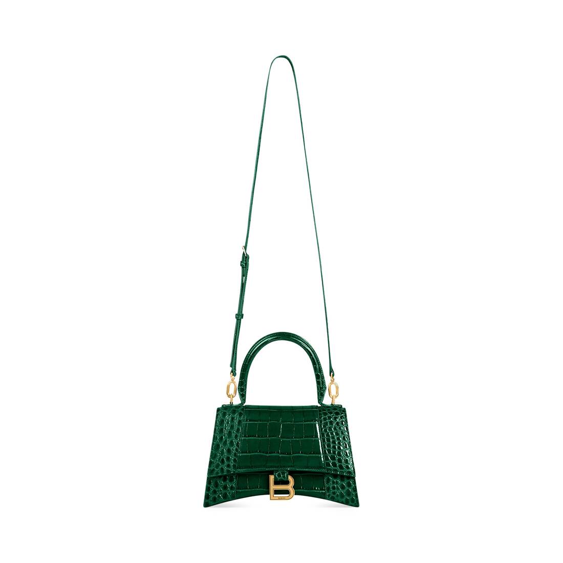 Women’s Hourglass Small Handbag Crocodile Embossed in Forest Green