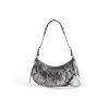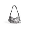 • Dimensions: L13 x H6,3 x W3,3 inch • Metallized Arena lambskin • Shoulder bag • Adjustable shoulder strap (19,3 inch) • Leather braided shoulder pad • Zipped closure with knotted leather puller • Front zipped pocket with knotted leather puller • Aged-silver hardware • 1 removable heart mirror • Tone-on-tone Balenciaga logo embossed on mirror • 1 zipped back pocket with knotted leather puller • 1 inner zipped pocket • Cotton canvas lining • Made in Italy