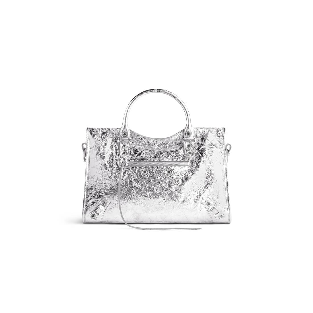 • Shiny silver hardware