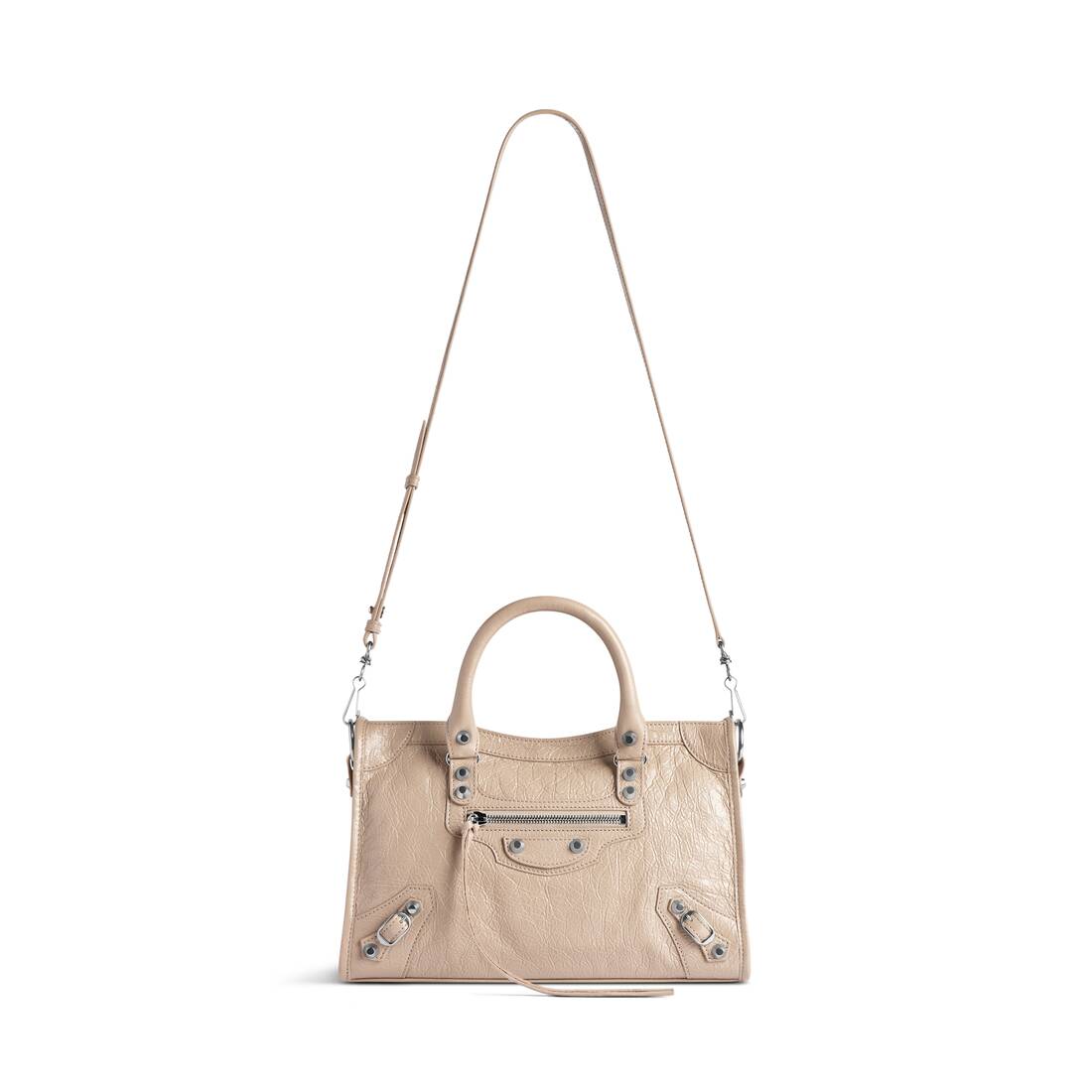 • Shiny silver hardware