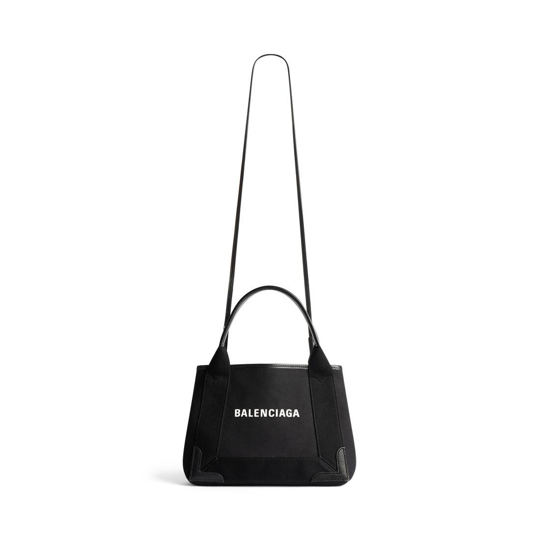 • Dimensions: L9,9 x H7,5 x W2,8 inch • Cotton canvas and calfskin • Cabas • Two handles • Removable shoulder strap (19,7 inch) • Balenciaga logo printed at front • Semi-shiny palladium hardware • Open top • 1 Inner zipped pocket and detachable pouch • Side snaps • Made in Italy