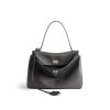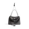 • Dimensions: L13,8 x H9,2 x W4,3 inch • Smooth calfskin • Handbag • One handle (drop: 8,1 inch) • Removable shoulder strap (drop: 22,6 inch) • Removable leather key holder with two split rings • Aged-silver hardware • Turn lock closure • Wide front pocket • 1 main compartment • 1 inner zipped pocket • 2 flat pockets at back • Side snaps • 4 brass feet • Nappa lambskin lining • Made in Italy