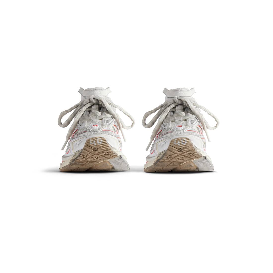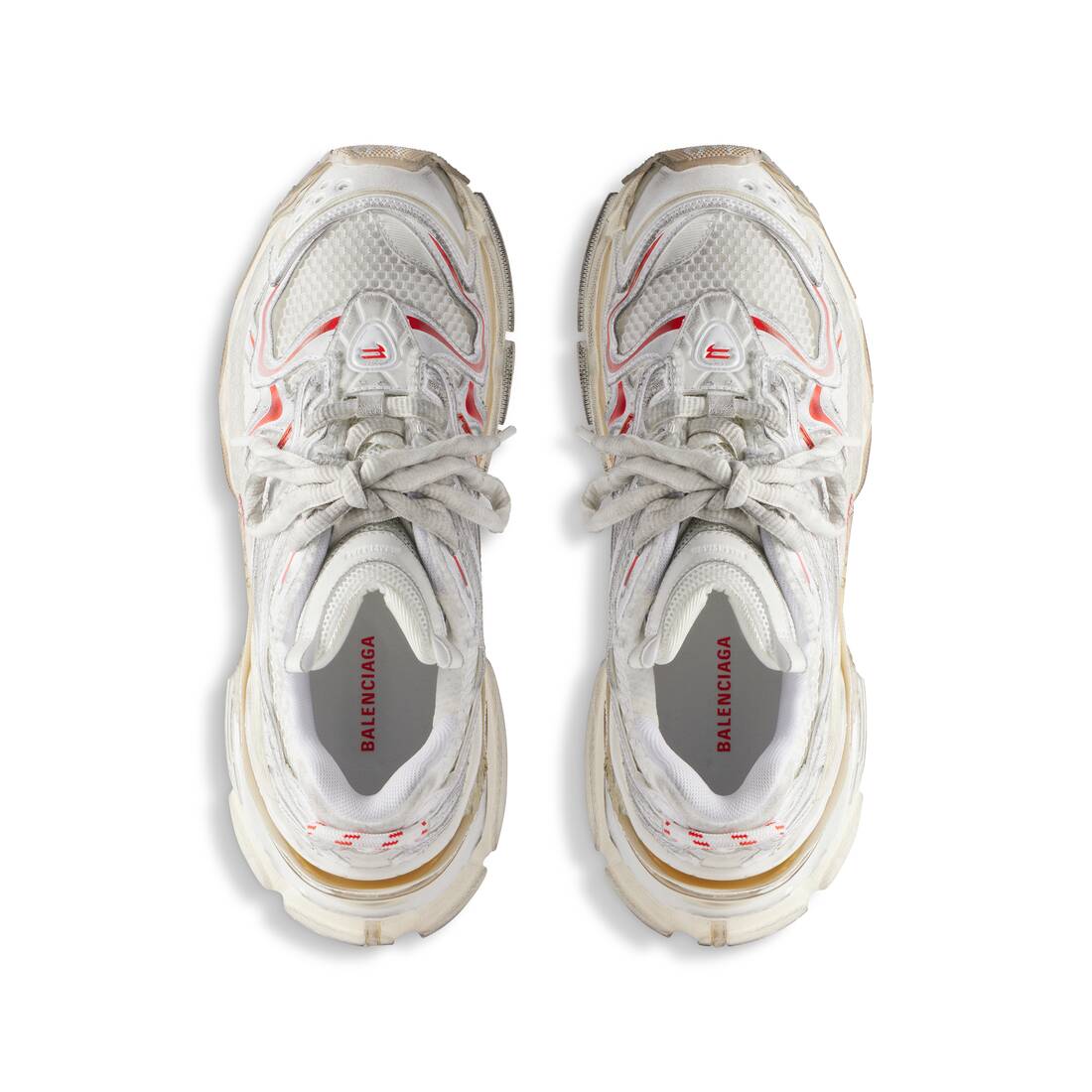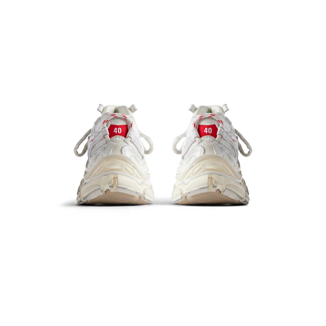 • Leather free • Sneaker • Mesh and polyurethane • Worn-out effect • Printed size at the edge of the toe • Debossed size at back • Runner logo printed on exterior • Balenciaga logo debossed on the tongue • Balenciaga logo at the back of the heel • Back pull-on tab • Made in China