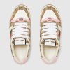 Influenced by classic sneakers from the 1970s, the Screener sneakers is named for the defensive sports move. This variation, in the classic Original GG canvas, features a unique pink leather trim and green and red Web stripe on the side and the vintage Gucci logo.