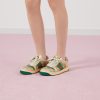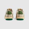 Influenced by classic sneakers from the ’70s, the Screener sneakers—named for the defensive sports move—feature the Web stripe on the side and vintage Gucci logo, treated for an allover distressed effect. A pastiche of different influences that span across decades, the Pre-Fall 2019 collection continues to reference old school shapes and materials inspired by vintage sportswear.