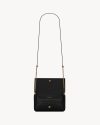 Cell phone holder with front flap decorated WITH THE CASSANDRE, featuring a leather and chain shoulder strap.