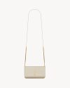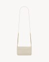 Cell phone holder with front flap decorated WITH THE CASSANDRE, featuring a leather and chain shoulder strap.