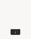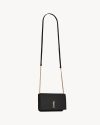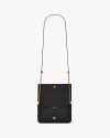 Cell phone holder with front flap decorated WITH THE CASSANDRE, featuring a leather and chain shoulder strap.