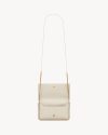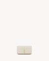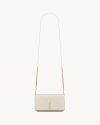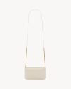 Cell phone holder with front flap decorated WITH THE CASSANDRE, featuring a leather and chain shoulder strap.