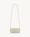 phone holder with front flap, decorated with the CASSANDRE and diamond-quilted overstitching, featuring a chain shoulder strap.