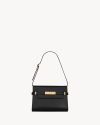 Manhattan with small flap on top, featuring compression tabs on the sides and an adjustable and detachable shoulder strap.