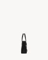 This piece may be carried as a handbag or worn crossbody with an adjustable and detachable strap.